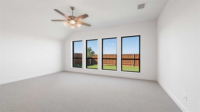 READY FOR MOVE-IN! Home office with French doors set at entry with 12-foot ceiling. Extended entry leads to open family room, dining area and kitchen with 17-foot ceilings throughout. Family room features wall of windows and wood mantel fireplace. Kitchen features generous counter space, double wall oven, 5-burner gas cooktop, walk-in pantry and island with built-in seating space. Primary suite with wall of windows. Double doors lead to primary bath with 11-foot ceiling, dual vanities, freestanding tub, separate glass-enclosed shower and two walk-in closets. Game room with French doors features wall of windows. A guest suite plus abundant closet and storage space add to this open one-story design. Covered backyard patio with 16-foot ceiling. Mud room off three-car garage.
